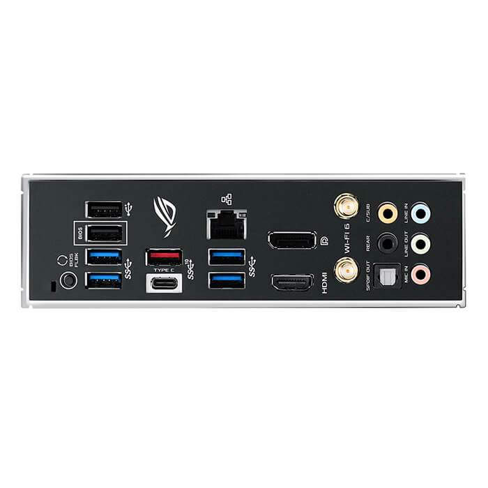 | Cổng giao tiếp ngoài | 1 x Intel® I225-V 2.5Gb Ethernet 1 x DisplayPort 1 x HDMI 2 x USB 3.2 Gen 2 (1 x Type-A+1 x USB Type-C®) 4 x USB 3.2 Gen 1 2 x USB 2.0 1 x Optical S/PDIF out 5 x Audio jack(s) 1 x BIOS FlashBack™ Button(s) ASUS Wi-Fi module (Wi-Fi 802.11 a/b/g/n/ac and Bluetooth v5.0) |