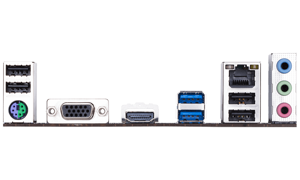 Socket: LGA1151 hỗ trợ CPU intel thế hệ 9, thế hệ 7, thế hệ 5, thế hệ 3 Kích thước: m-ATX Khe cắm RAM: 2 khe (Tối đa 32GB) Khe cắm mở rộng: 1 x PCI Express x16 slot/2 x PCI Express x1 slots Khe cắm ổ cứng: 6 x SATA 6Gb/s connectors