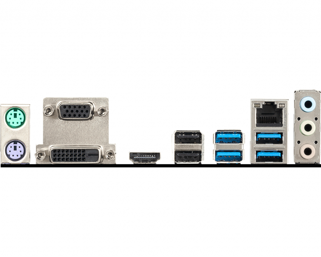 Mouse VGA Port USB 2.0 LAN Port HD Audio Connectors Keyboard DVI-D Port HDMI Port USB 3.2 Gen1 |