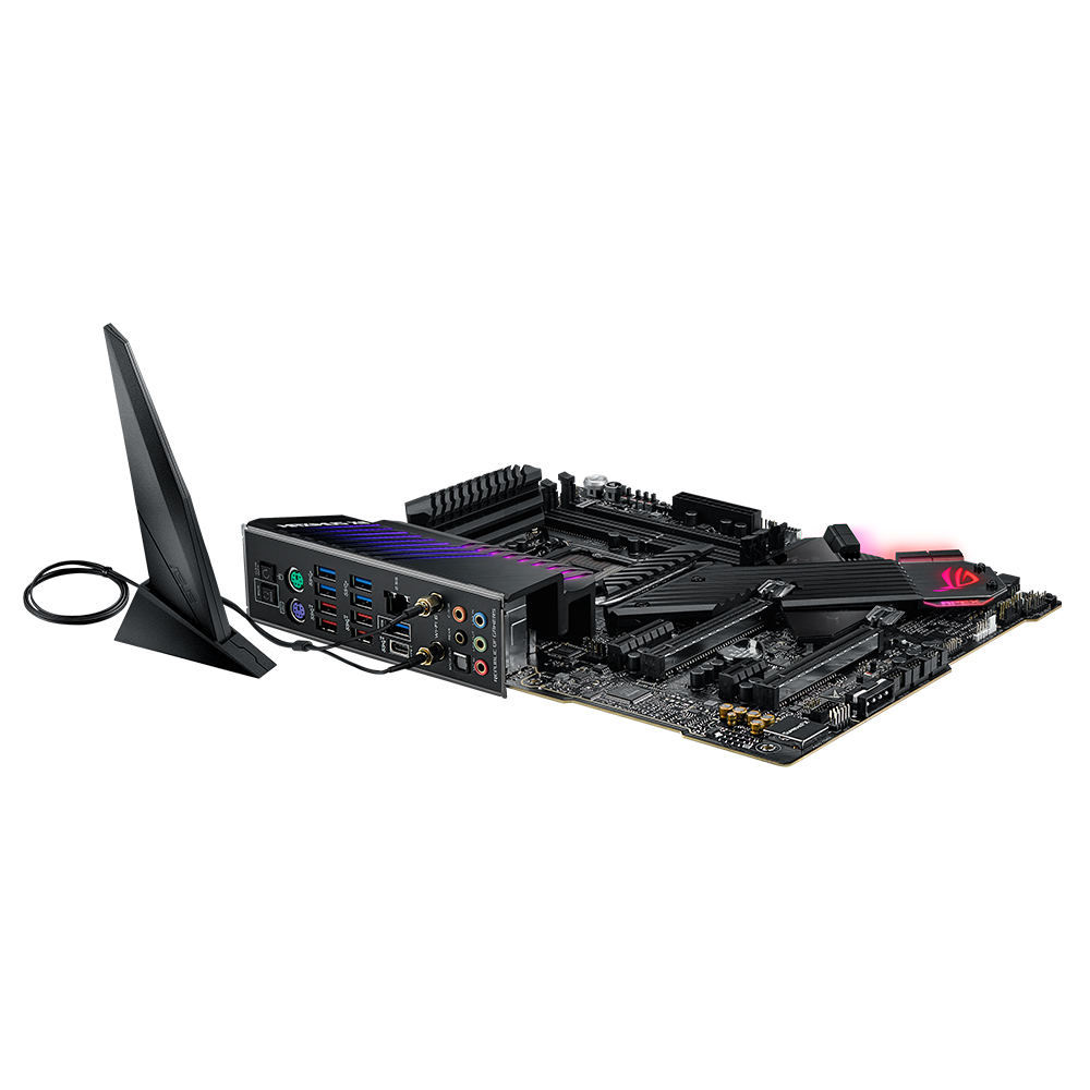 | ASUS Special Features | ROG Extreme OC kit - EZ PLUG - FlexKey button - LN2 Mode - Probelt - ReTry button - Safe boot button - Start button - Slow Mode Extreme Engine Digi+ - 10K Black Metallic Capacitors - Infineon TDA21472 Power Stage - MicroFine Alloy Choke ASUS Q-Design - ASUS Q-Code - ASUS Q-Connector - ASUS Q-DIMM - ASUS Q-LED (CPU [red], DRAM [yellow], VGA [white], Boot Device [yellow green]) - ASUS Q-Slot ASUS Thermal Solution - Aluminum M.2 heatsink cover ASUS EZ DIY - BIOS Flashback™ button - Clear CMOS button - Procool II - Pre-mounted I/O shield - SafeSlot AURA Sync - Standard RGB header(s) - Addressable Gen 2 RGB header(s) Dual BIOS |